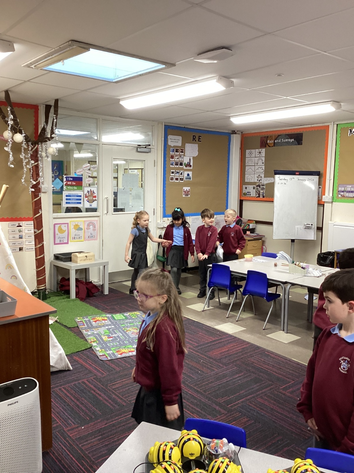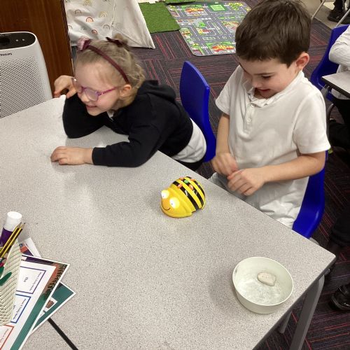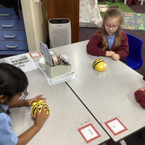 This half term we have been exploring the bee bots. We have learnt about directions and commands and have been learning how to give the beebot commands to make it move to a desired destination.