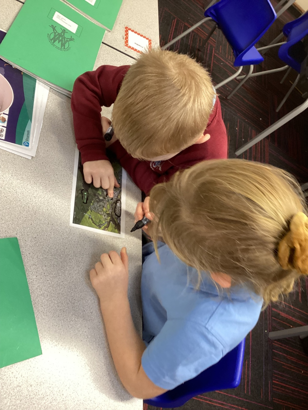 In Geography the children used maps to find England and then find where we live in Rochdale. They also looked to see if there were other places they knew of.